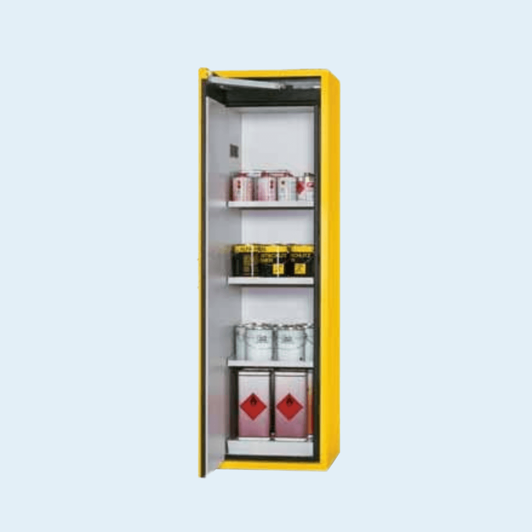 Tek Kapılı Yangın Güvenlik Dolabı yanıcı ve tehlikeli kimyasalların güvenli şekilde saklanmasını sağlayan, EN 14470-1 standartlarına uygun yangın güvenlik dolabı modelleridir. Laboratuvarlar, endüstriyel tesisler ve araştırma merkezlerinde yaygın olarak kullanılan kimyasal depolama dolabı, yüksek yangın dayanımı ve güvenlik özellikleriyle öne çıkmaktadır. Tip 90 yangına dayanıklı dolap seçenekleri, kullanıcı dostu tasarımı ve sağlam yapısı ile güvenli depolama çözümleri sunar.